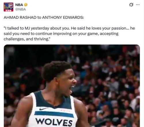 面對(duì)愛德華茲這樣的表現(xiàn),美記Ahmad Rashad在采訪愛德華茲時(shí)透露,喬丹對(duì)其非常欣賞。 “或許有些人看不慣你的行事作風(fēng),但也有很多人很欣賞你,比如喬丹,昨天喬丹和我聊天時(shí)談到了你,他說喜歡你在攻防兩端的那股勁頭,他說你需要繼續(xù)提高球技,接受挑戰(zhàn),并且爭(zhēng)取成功,他說你是那種不斷追求目標(biāo)的球員,喬丹給你的這一番評(píng)價(jià)是不是很棒?” “那肯定是了,喬丹是我的偶像,我在選秀前為森林狼試訓(xùn)時(shí),喬丹還來球館看了看我”愛德華茲回應(yīng)到。