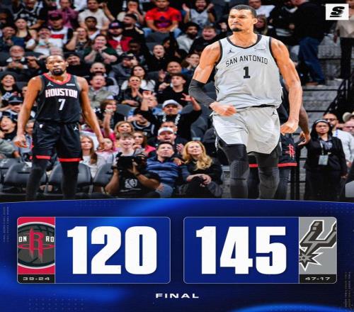 馬刺本賽季對陣火箭的戰(zhàn)績,來到了3勝1負(fù)。需要關(guān)注的是,圣安東尼奧此戰(zhàn)創(chuàng)下了兩大神跡。第1、此役轟下了145分創(chuàng)造了本賽季馬刺單場得分新高,此前是139分(兩次)。