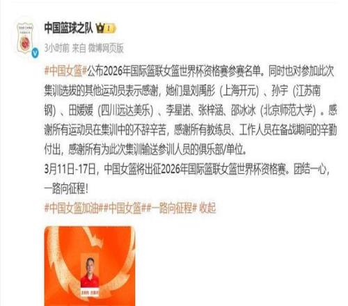 女籃12人大名單公布,楊舒予擔(dān)任隊(duì)長(zhǎng),僅4人參加過上屆世界杯