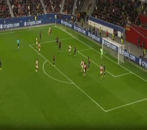 第46分鐘,格里馬爾多開出角球,安德里希頭球破門,勒沃庫森1-0阿森納