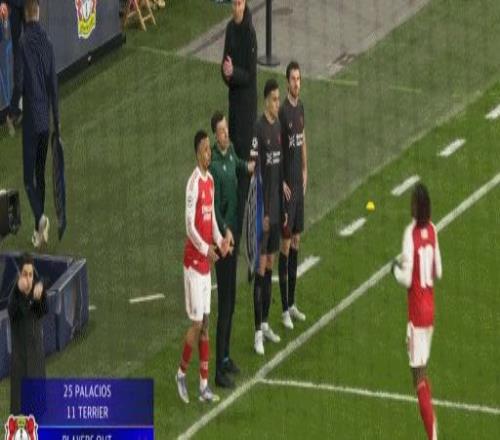 第74分鐘,哈弗茨登場戰(zhàn)舊主,哲凱賴什被換下