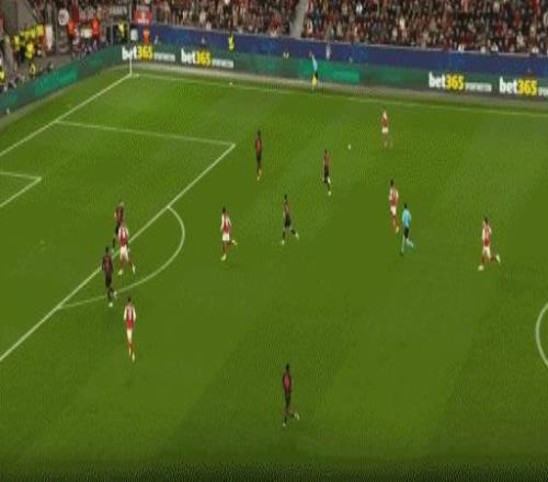 第45分鐘,薩卡帶球長驅直入,最后被搶斷