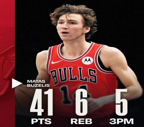 大概是什么概念呢?在本場比賽之前,布澤利斯生涯一共只有過2場30+,且還只是31分、32分。 還有一個紀(jì)錄是:公牛隊史上一個在21歲前拿到40+的球員是布蘭德,再上一個?邁克爾喬丹。
