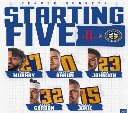 首發(fā)陣容方面,掘金隊這邊,沃特森(腿筋)確認缺陣,主帥排出的最新首發(fā)五人組為:賈馬爾-穆雷、布勞恩、卡梅隆-約翰遜、阿龍-戈登、約基奇;火箭隊這邊,范弗利特和亞當斯賽季報銷,泰特還是不打,首發(fā)陣容為:阿門-湯普森、賈巴里-史密斯、凱文-杜蘭特、塔里-伊森、阿爾佩倫-申京。