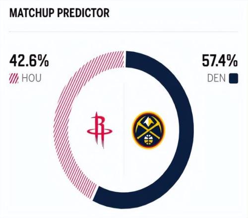 這是兩隊本賽季的第四次交鋒,前三次交手中,掘金取得2勝1負,稍占優(yōu)勢。 賽前,美媒ESPN對本場比賽進行了勝率預測,火箭隊勝率僅有42.6%,掘金勝率則為57.4% ,差距還挺明顯。