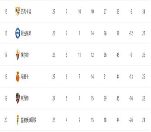 隨著皇馬41大勝+馬競10!西甲最新積分榜:巴薩僅領(lǐng)先1分