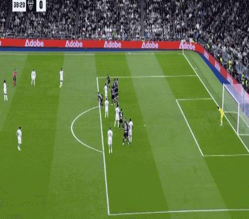 第40分鐘,威尼修斯主罰定位球橫敲,巴爾韋德遠(yuǎn)射被門將撲出,禁區(qū)內(nèi)一片混亂之中,呂迪格機敏跟進(jìn)凌空掃射破門,皇馬1-0取得領(lǐng)先,伯納烏瞬間沸騰。